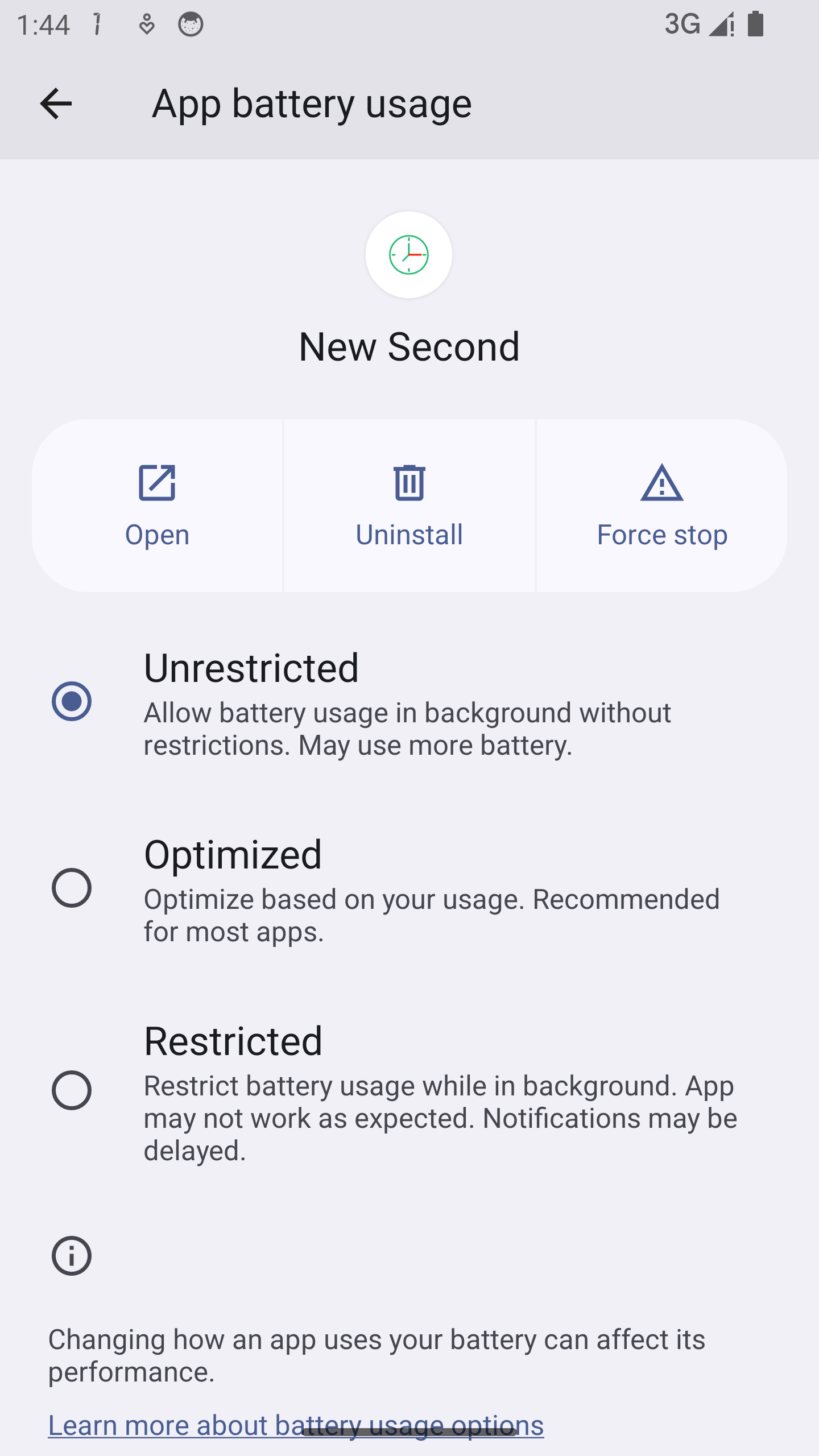 Common: Open "New Second" App's info -> "Battery usage" -> "Background restriction" -> "App can use battery in background", or Open "New Second" App's info -> "App battery usage" -> "Unrestricted".